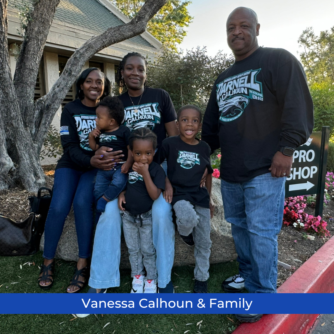 Tissues were needed during Vanessa Calhoun’s story as the Gold Star Family recipient of a T2T-funded mortgage-free home. Wife of recently slain Police Officer Darnell Calhoun and mother of three young children, Russell (5), Troy (3), and Malcolm (1), she bravely shared her heart-breaking story and her gratitude to the foundation. She talked about the love she experienced with her husband, whom she met in college, the brave journey she embarked on after their unimaginable loss, and her persistent dedication to life and raising a family well in the face of challenges and difficulties. Her mother and father, Katina and Andre Brown, were nearby taking care of their grandchildren while she spoke.
