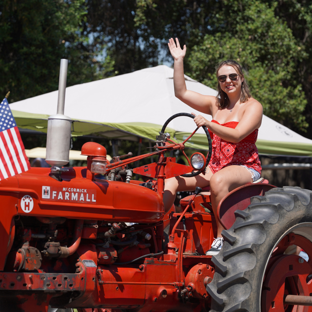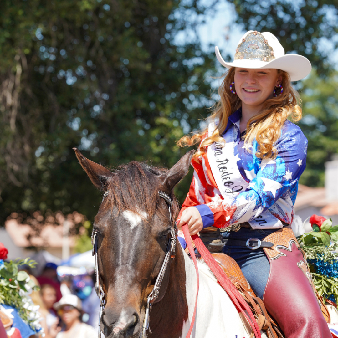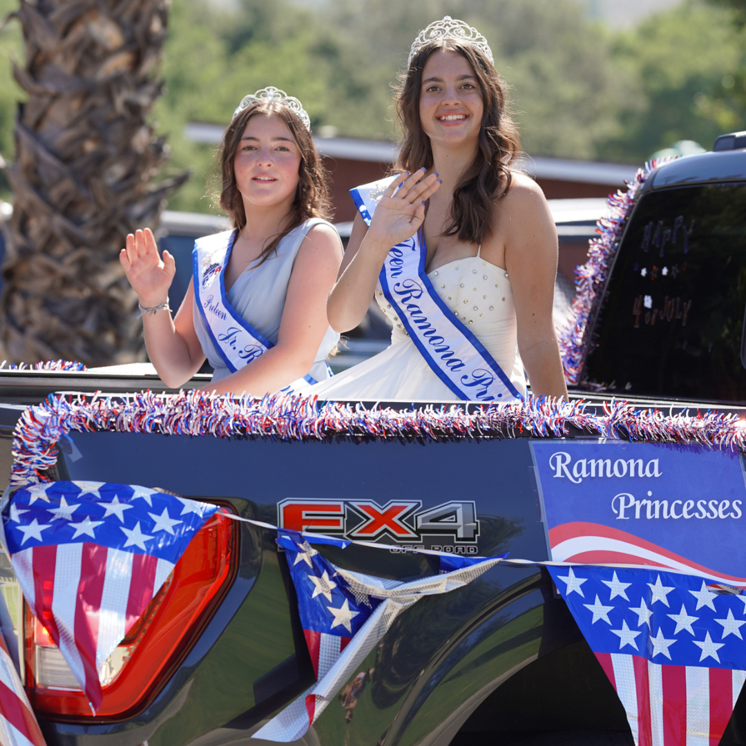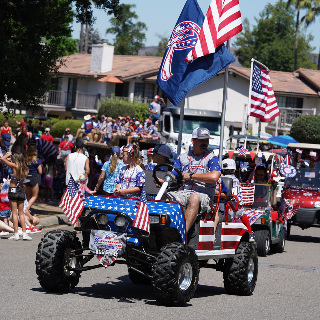 Ramona Royalty waved at the spectators—most dressed in a sea of red, white, and blue—and the Rodeo Queens waved while seated on their horses. Members of the San Vicente Saddle Club, Boy Scouts, Girl Scouts, CalFire and Smokey the Bear in shiny trucks, and many driving vintage tractors or vehicles participated along with Ramona business leaders, local service organizations, schools, sports teams, and champions, and the popular SDCEA Lifeguard Team sprayed everyone with water. Many Estates members also joined the festivities by decorating their golf carts and driving in our hometown community parade. Recreation Team members Joanne Rivera and Sophie Sheets served as the entertaining emcees and announced the parade participants as they passed.