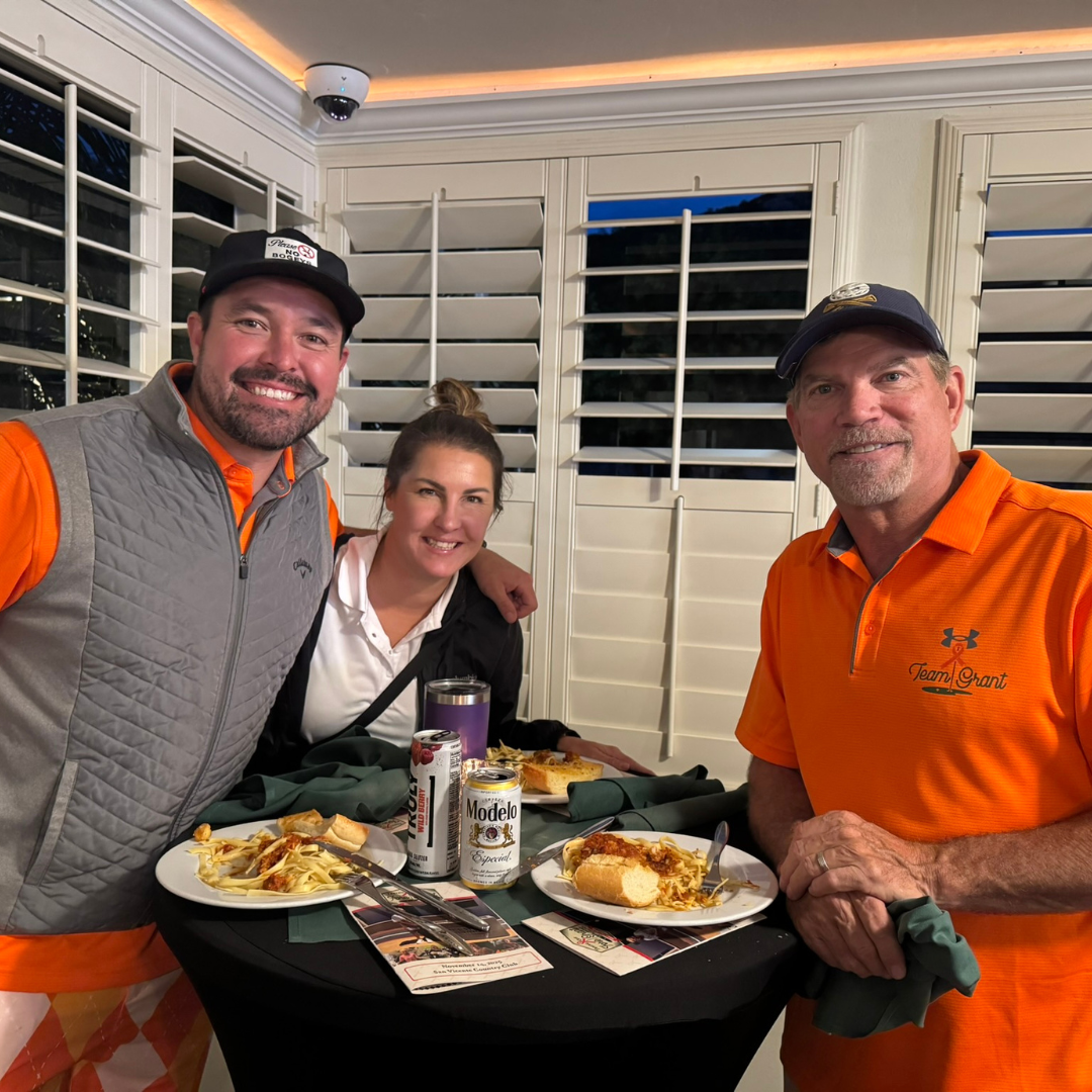 Petersen set the tone for play that day, as he stood proudly in his bright orange Flintstone golf shirt. “We are all wearing orange because orange is Grant’s ribbon color,” he said, sharing how deeply the turnout touched their family. With his grandfather recently passing from cancer, seeing so many people rally behind his little brother “really hit home.” James also spoke with pride about the unity between Grant’s dad, Damien, and mom, Jessica, saying they have “one of the best divorced couple relationships,” fully supporting each other through Grant’s journey.