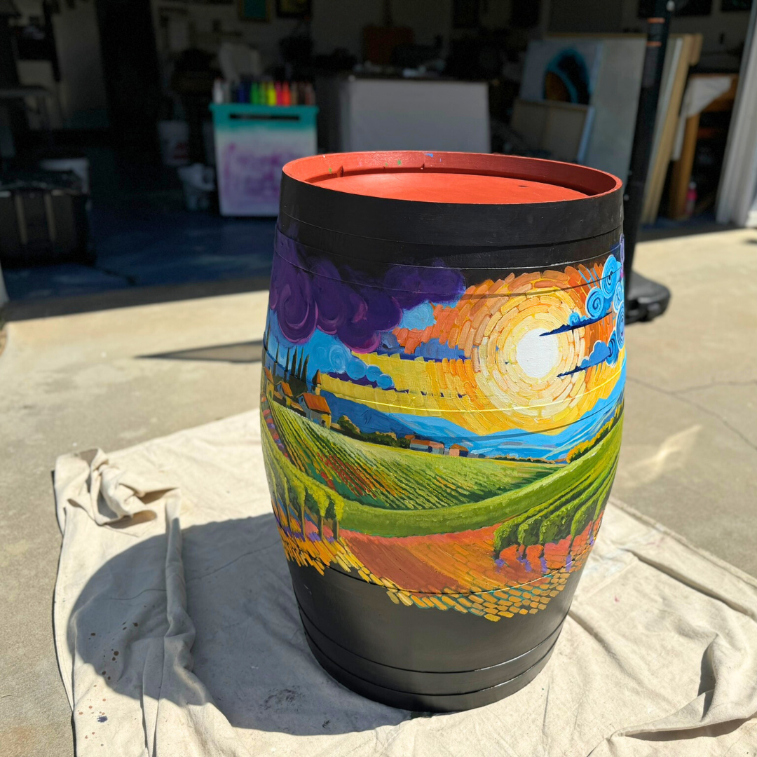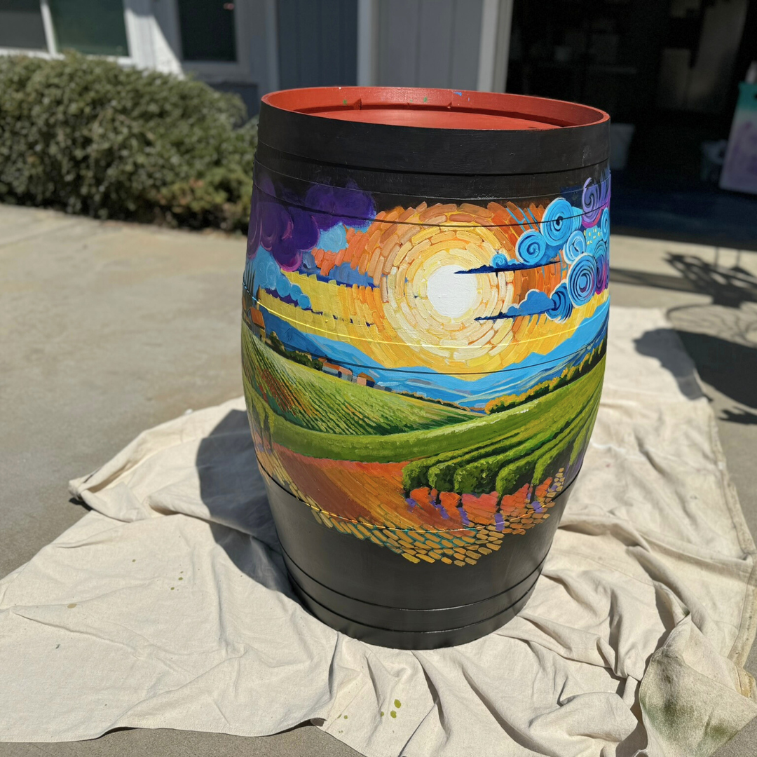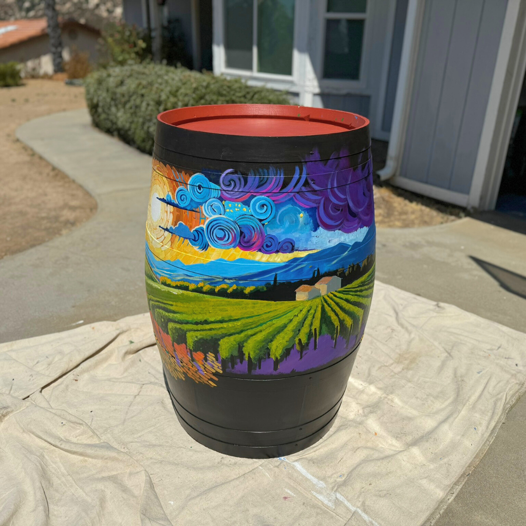 SDCE artist Johnathan Martinez has creativity and a drive to create beautiful art with an emotional connection. His newest piece is a wine barrel he painted with a vineyard theme featuring beautiful grape vines with depth and a variety of colors.