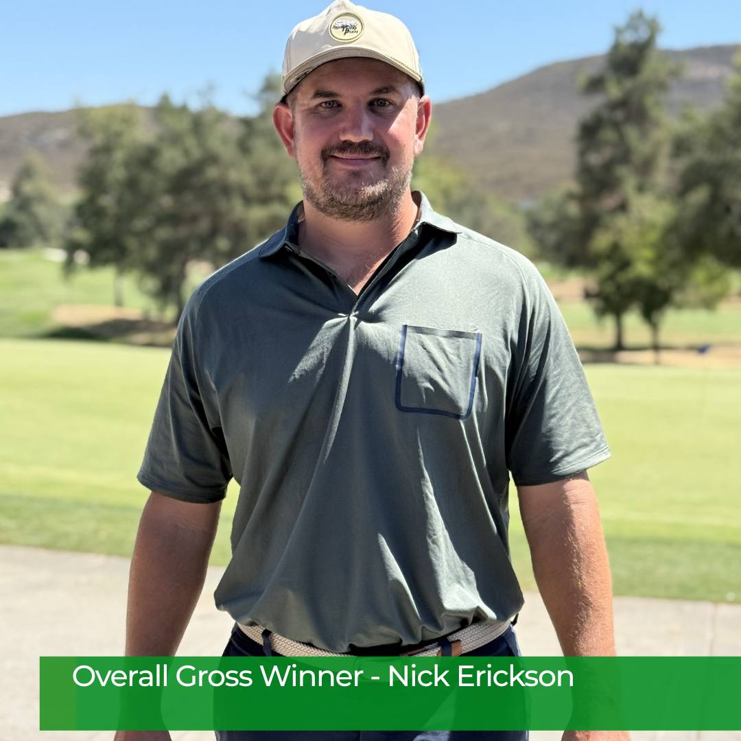 In the Overall Gross Division, it was Nick Ericson who once again rose to the occasion. With steady play throughout the day, Ericson captured the title for the second year in a row—an impressive back-to-back victory. His consistent performance not only secured his spot as Gross Champion but also earned him the honor of advancing to represent the San Vicente Men’s Golf Club in competition against other clubs.