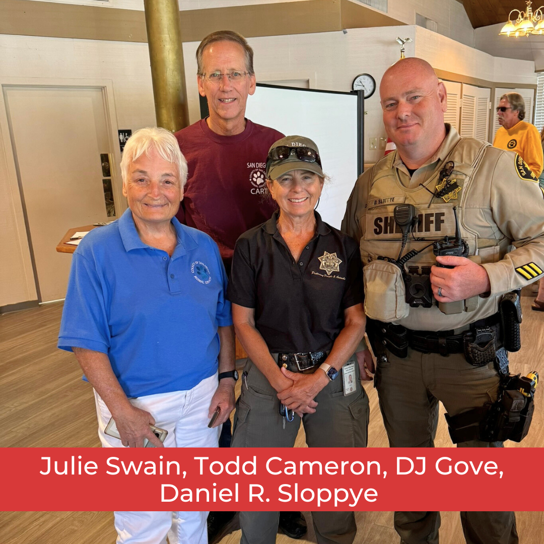 DJ Gove, Emergency Coordinator for the County of San Diego, Department of Animal Services: Oversees emergency preparedness and response efforts for animals during disasters, including coordinating evacuations, sheltering, and providing guidance on animal safety and welfare.